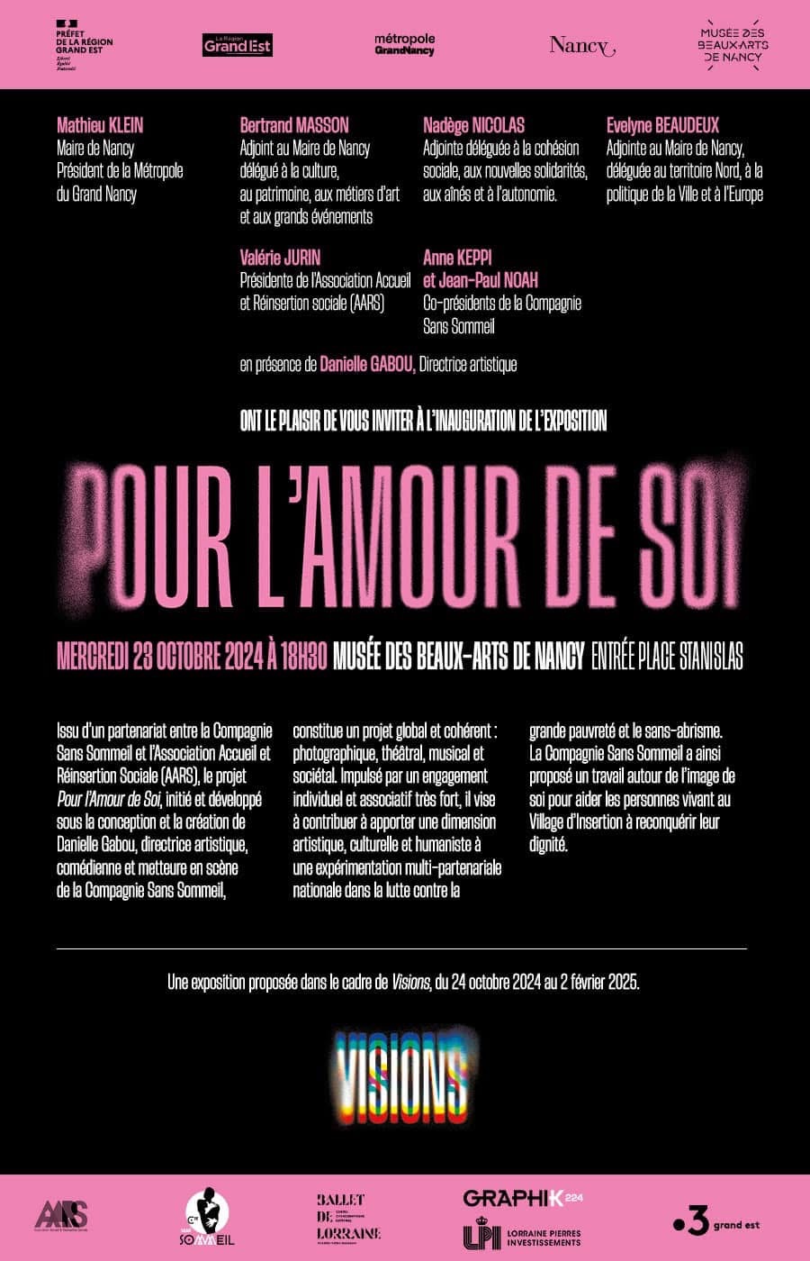 Dans le cadre de la nuit de la solidarité et durant 15 jours, l'exposition photographique POUR L'AMOUR DE SOI s'est installée salle Mienville / Hôtel de Ville de Nancy. Photographie : Emmanuelle HENRY sous la DA de Danielle GABOU.